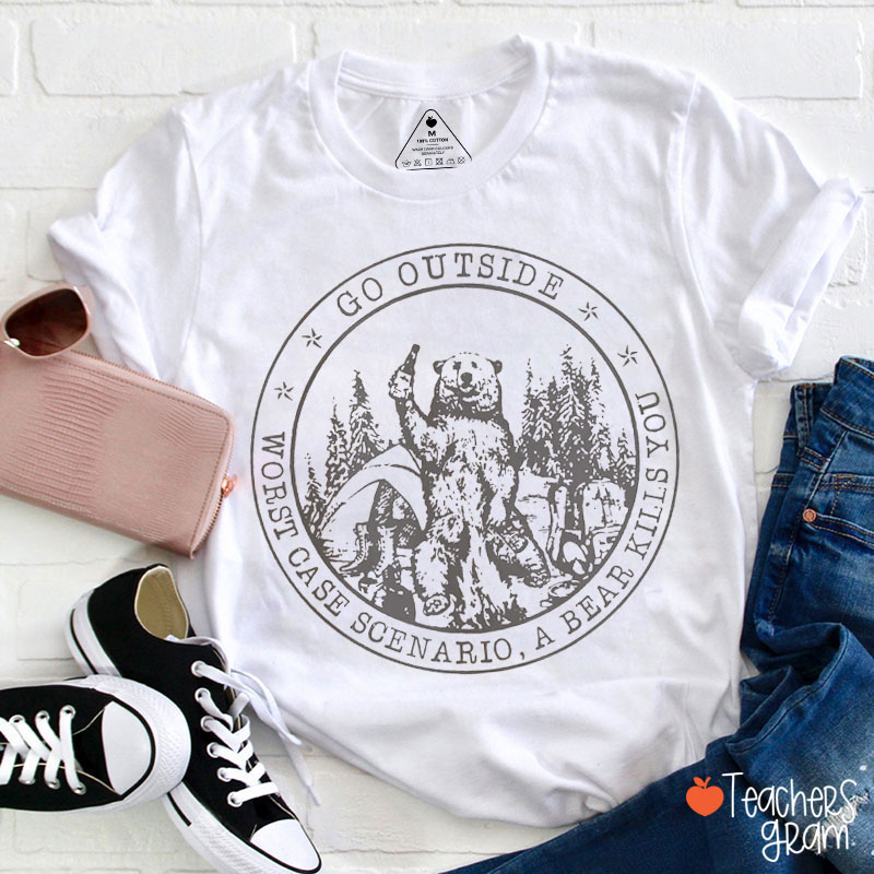 Go Outside Worst Case Scenario A Bear Kills You Teacher T-Shirt