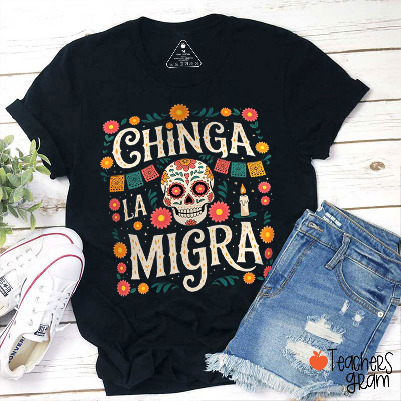 Chinga La Migra Day Of The Dead Teacher T-Shirt