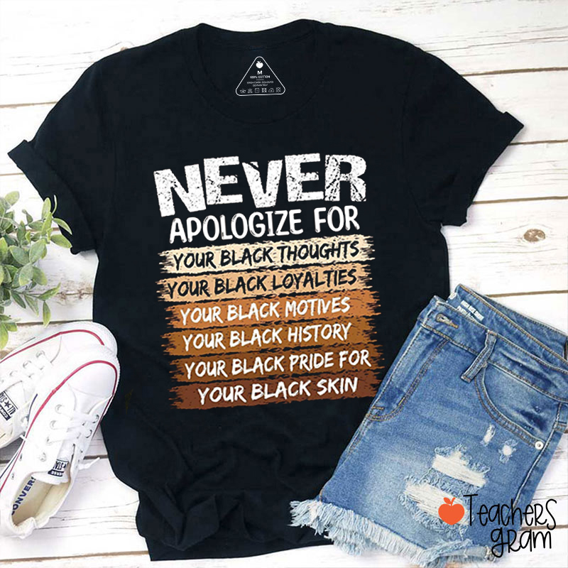 Never Apologize For Your Black Thoughts Teacher T-Shirt