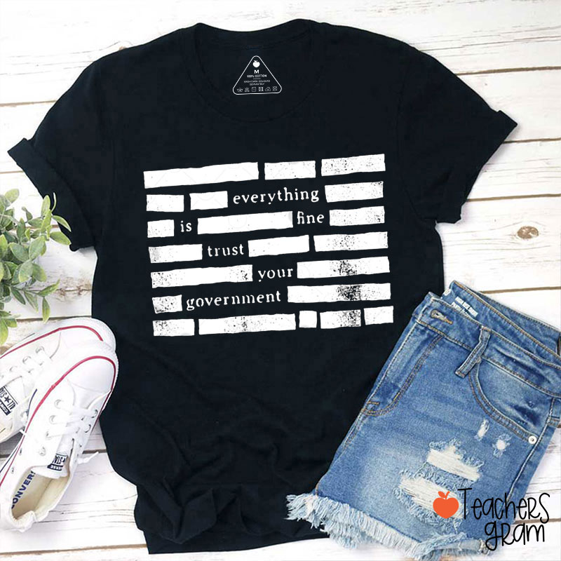 Everything Is Fine Trust Your Government Conspiracy Humor Teacher T-Shirt