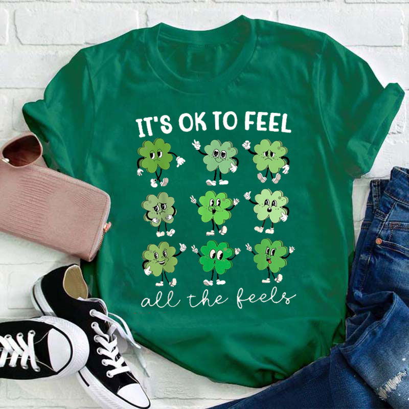 It's Ok To Feel All The Feels Clover Teacher T-Shirt