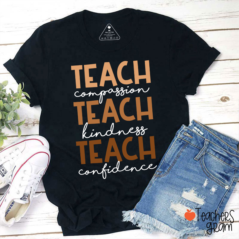 Teach Compassion Teach Kindness Teach Confidence Teacher T-Shirt