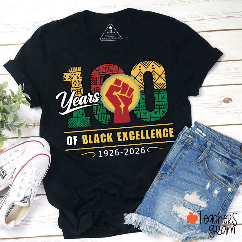 100 Years Of Black Excellence 1926-2026 Teacher T-Shirt