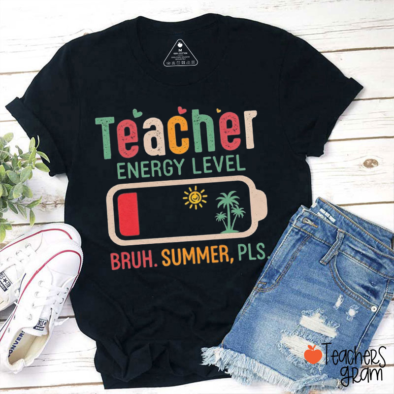 Teacher Energy Level Bruh Summer Pls Teacher T-Shirt