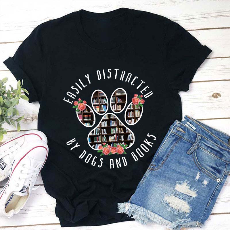 Easily Distracted By Dogs And Books Teacher T-Shirt