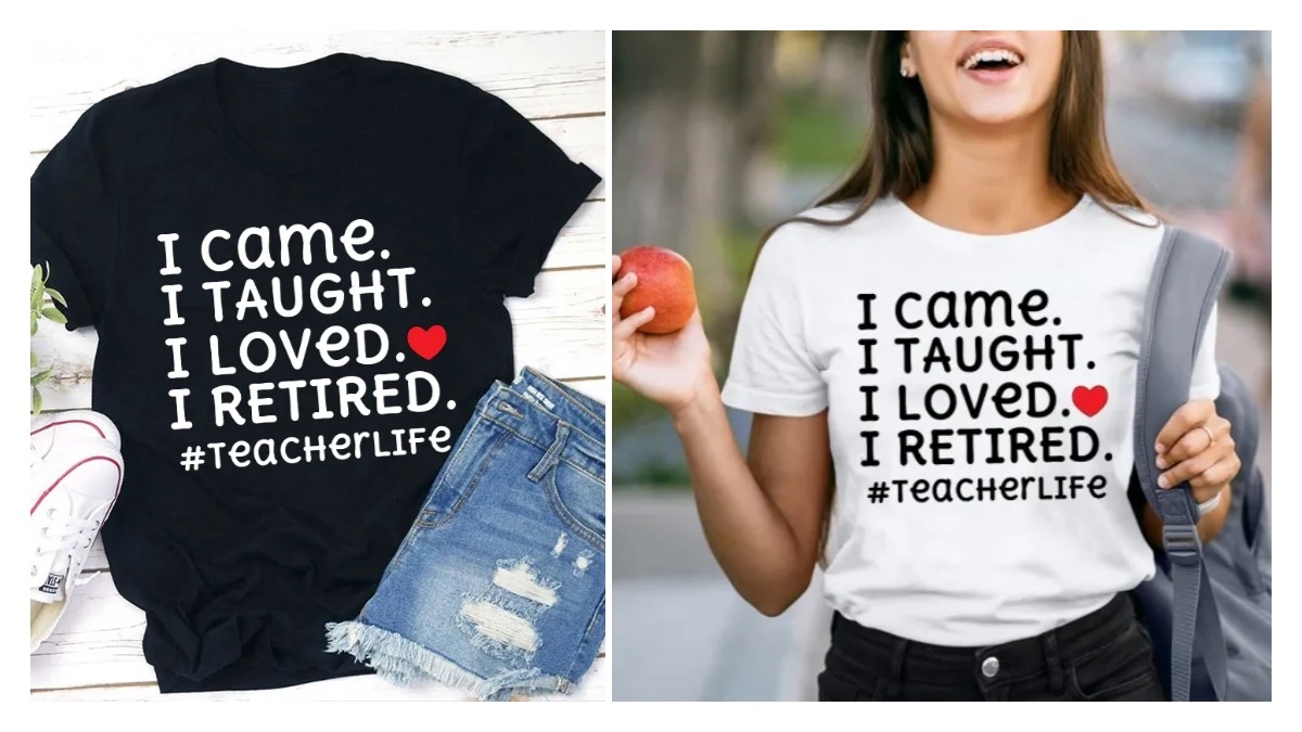 For the Educator with a Wry Sense of Humor, the “I Came. I taught. I loved. Furthermore, I retired.” shirt offers a playful twist with its humorous take on the teaching journey. It’s perfect for those who appreciate wit and the lighter side of teaching experiences.