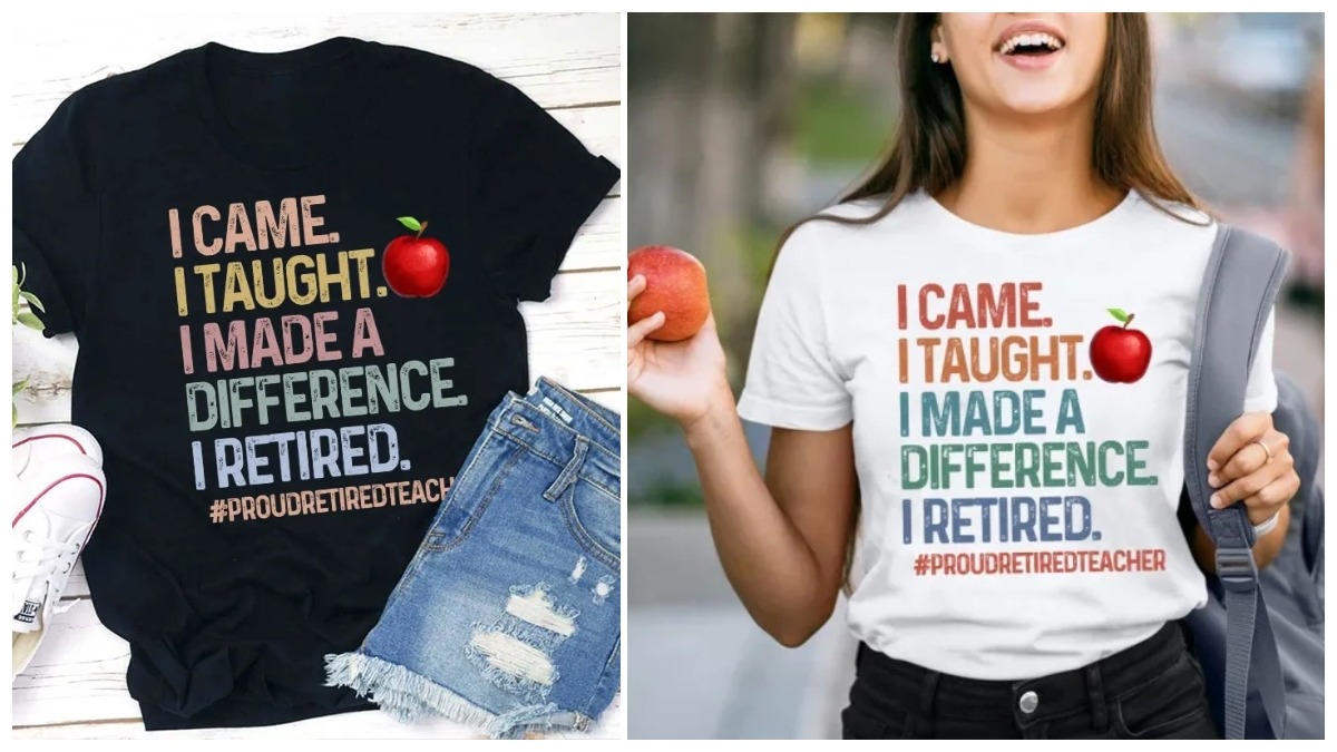 For the Dedicated Bibliophile, consider the “I Came. I taught. I made a Difference. Likewise, I retired.” t-shirt. Its bold declaration celebrates the joy of a teaching career well-spent, ideal for those who love the written word and the impact of education.
