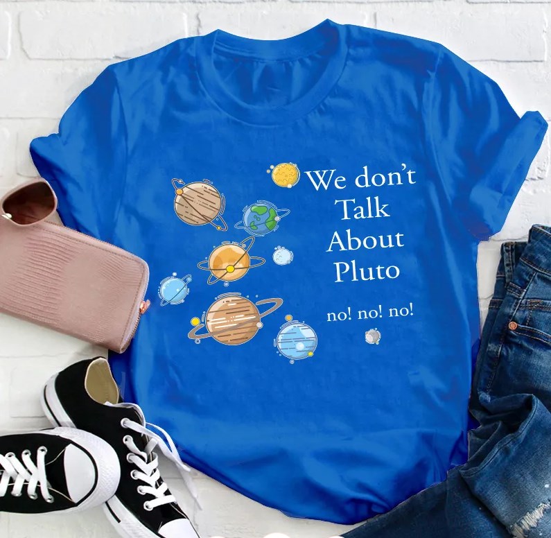 Embrace your role as the leader of the laboratory with a playful "We Don't Talk About Pluto" graphic tee, this shirt adds a touch of whimsy to your everyday attire while asserting your authority in the classroom.