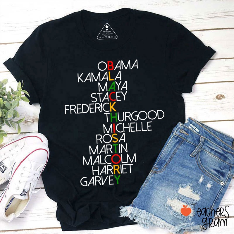 Our acrostic tee creatively spells out “BLACK HISTORY” using the names of prominent figures like Obama, Kamala, and Maya. This design is both educational and stylish, allowing wearers to proudly display their appreciation for Black history. The simplicity of the design ensures it pairs well with any outfit, making it a versatile addition to your wardrobe.