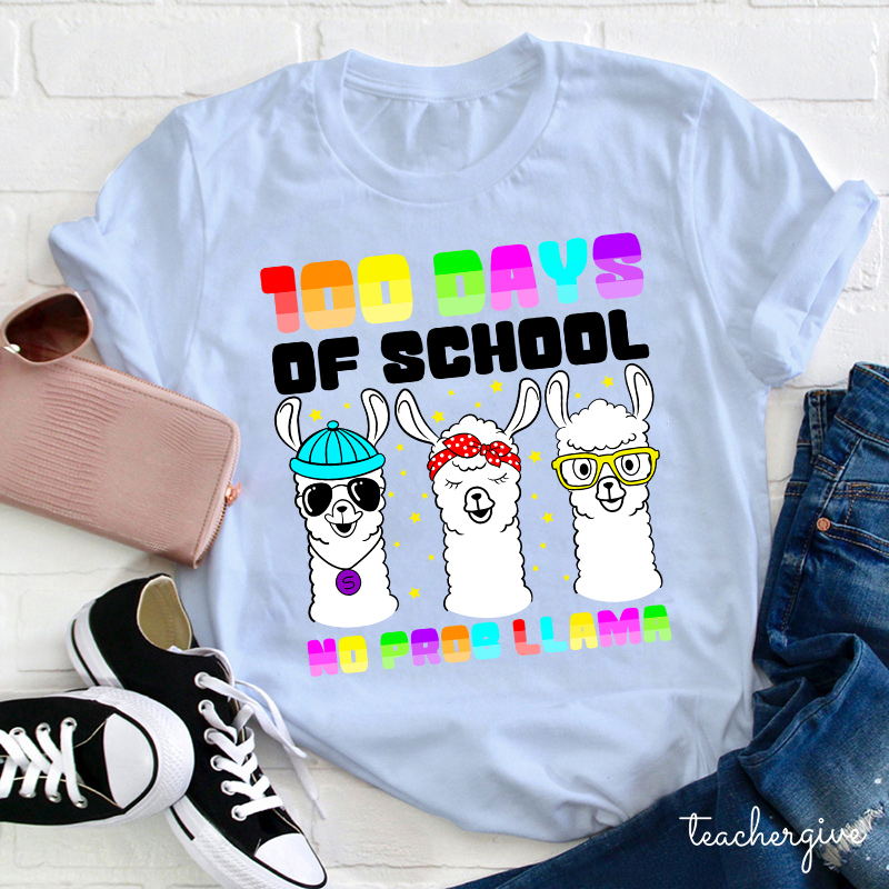 100 Days Of School No Prob Llama Teacher T-Shirt