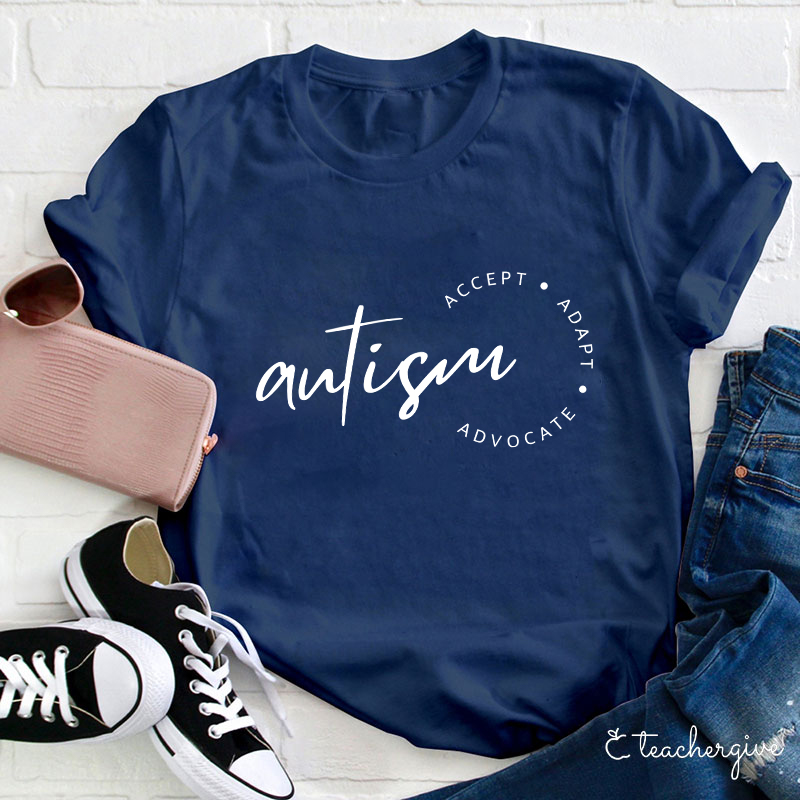 Autism Accept Adapt Advocate Teacher T-Shirt