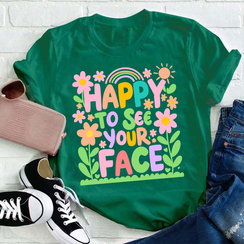 Cute Little Flower Tree Happy To See Your Face Teacher T-Shirt