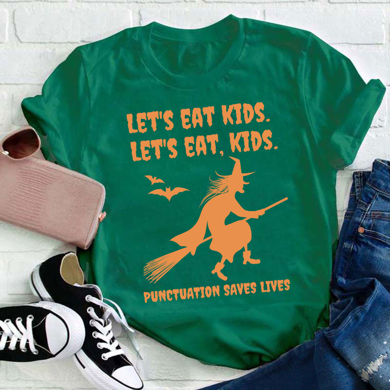 Let's Eat Kids Punctuation Saves Lives Teacher T-Shirt