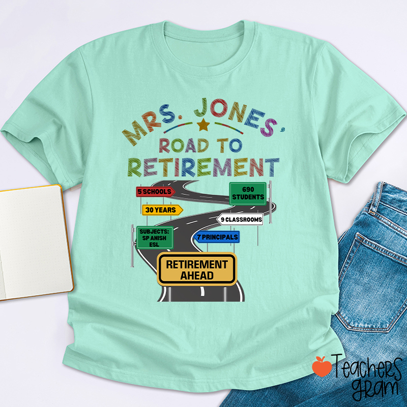 Personalized Name Road To Retirement Teacher T-Shirt