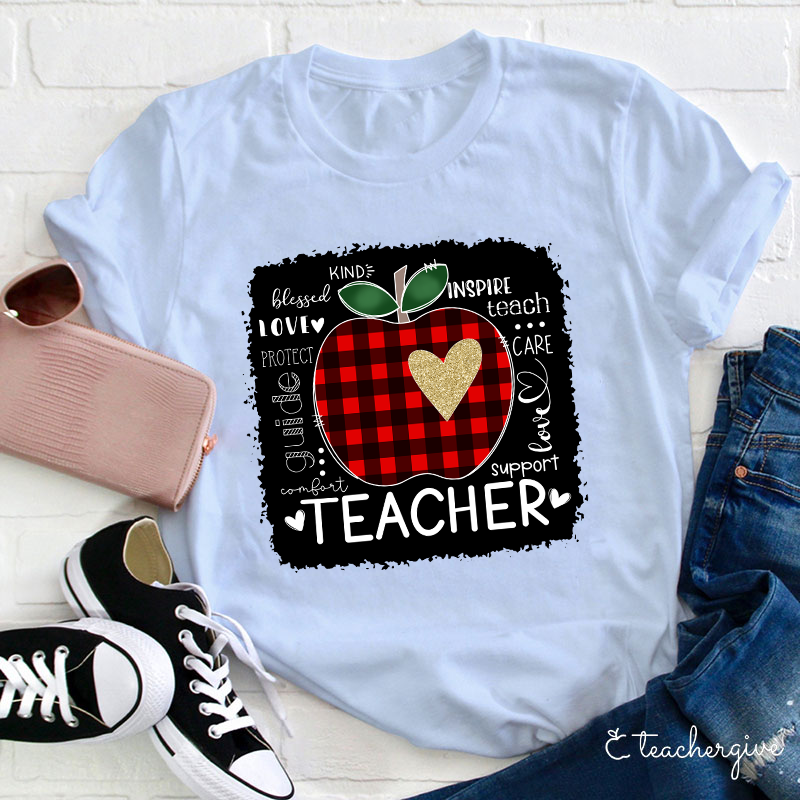 Red Plaid Apple Teacher Life Teacher T-Shirt