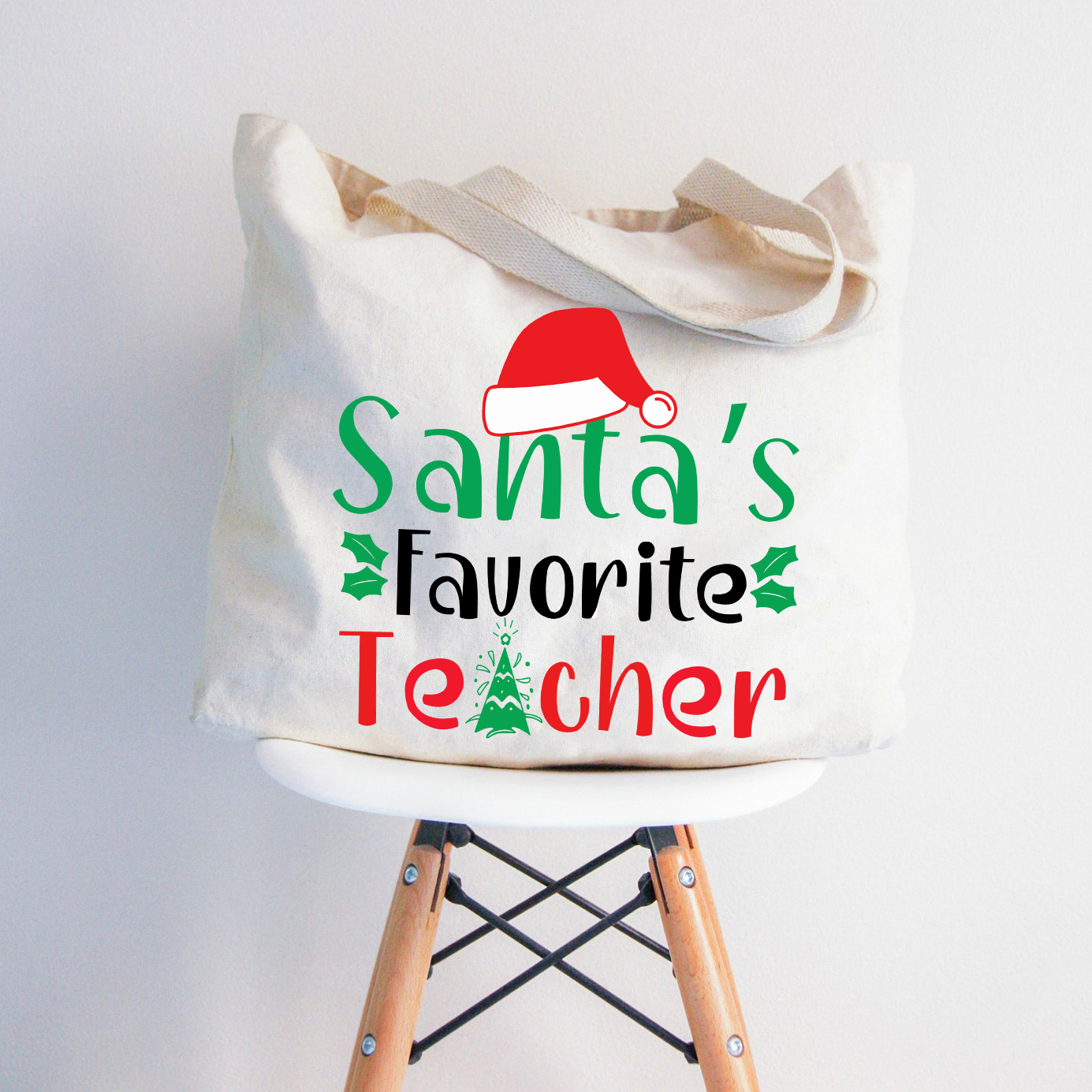 Santa's Favorite Teacher Christmas Tree Zip Tote Bag