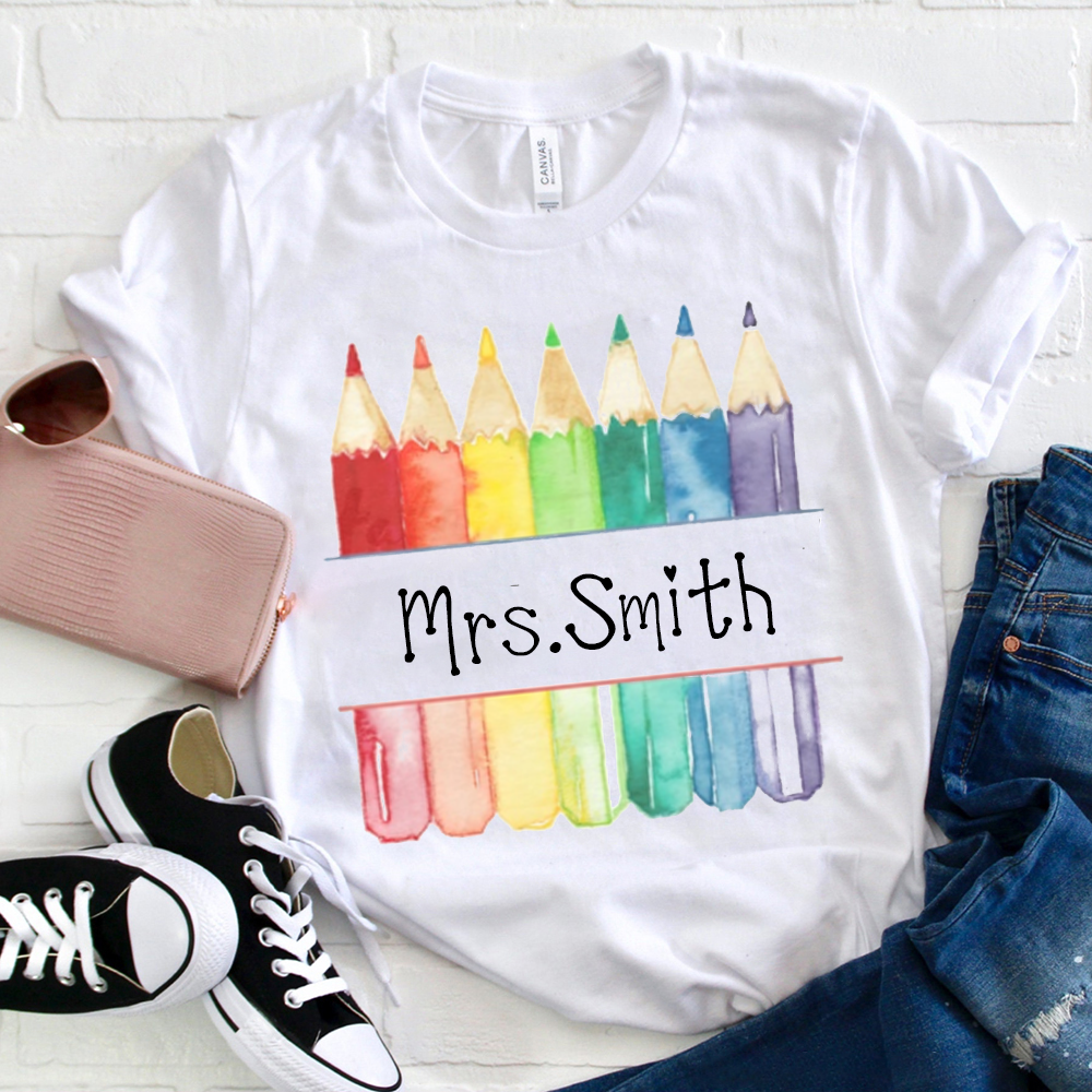 Personalized Teacher Letter Colorful Pencils T-Shirt