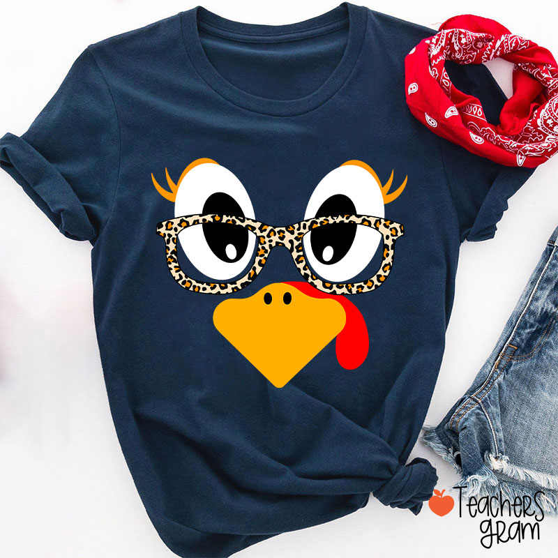 Turkey With Leopard Print Glasses Teacher T-Shirt